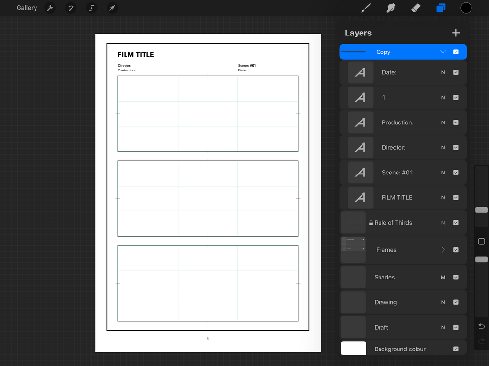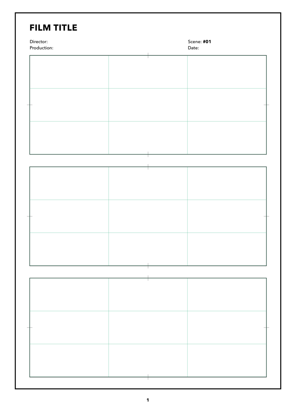 A free storyboard template for story artists, animators, film directors, illustrators, and designers who use Procreate to draw their boards. The sheet is DINA4 vertical (portrait) page, this template has three frames per sheet, in 2.39:1 aspect ratio (Scope).