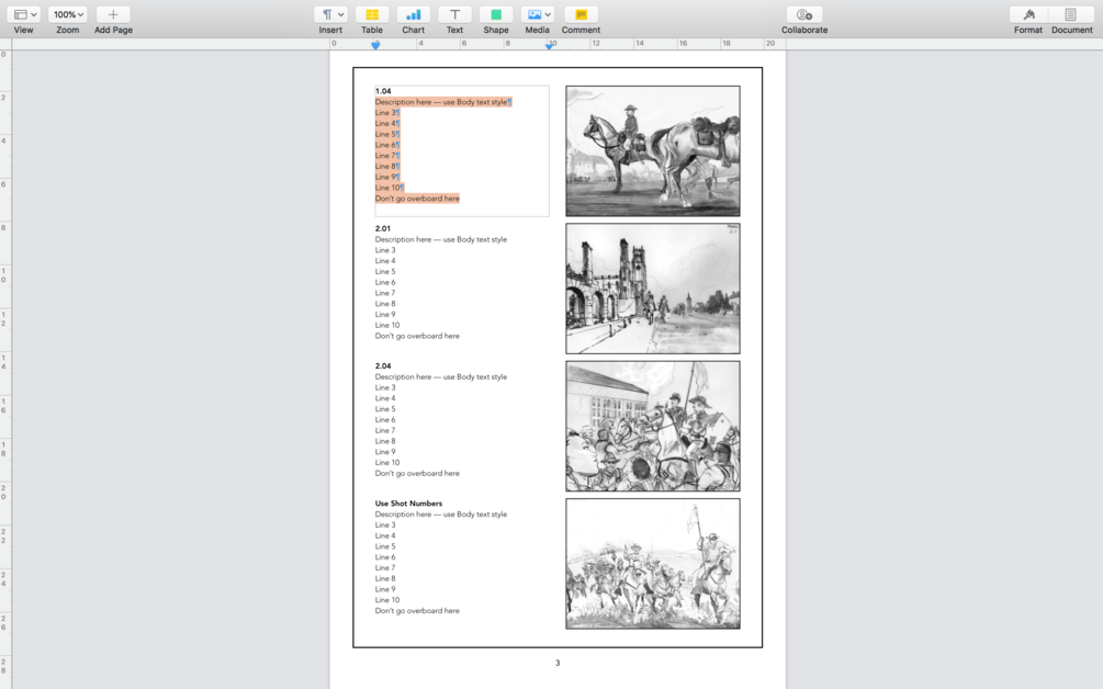 HOW TO USE THIS TEMPLATE: This is a storyboard template layout for films in 1.33:1 aspect ratio (4:3, an old standard for traditional television & computer monitor) that you can edit with Pages, the free Apple productivity app.